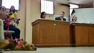 Cão acompanha julgamento de dona acusada de maus tratos
